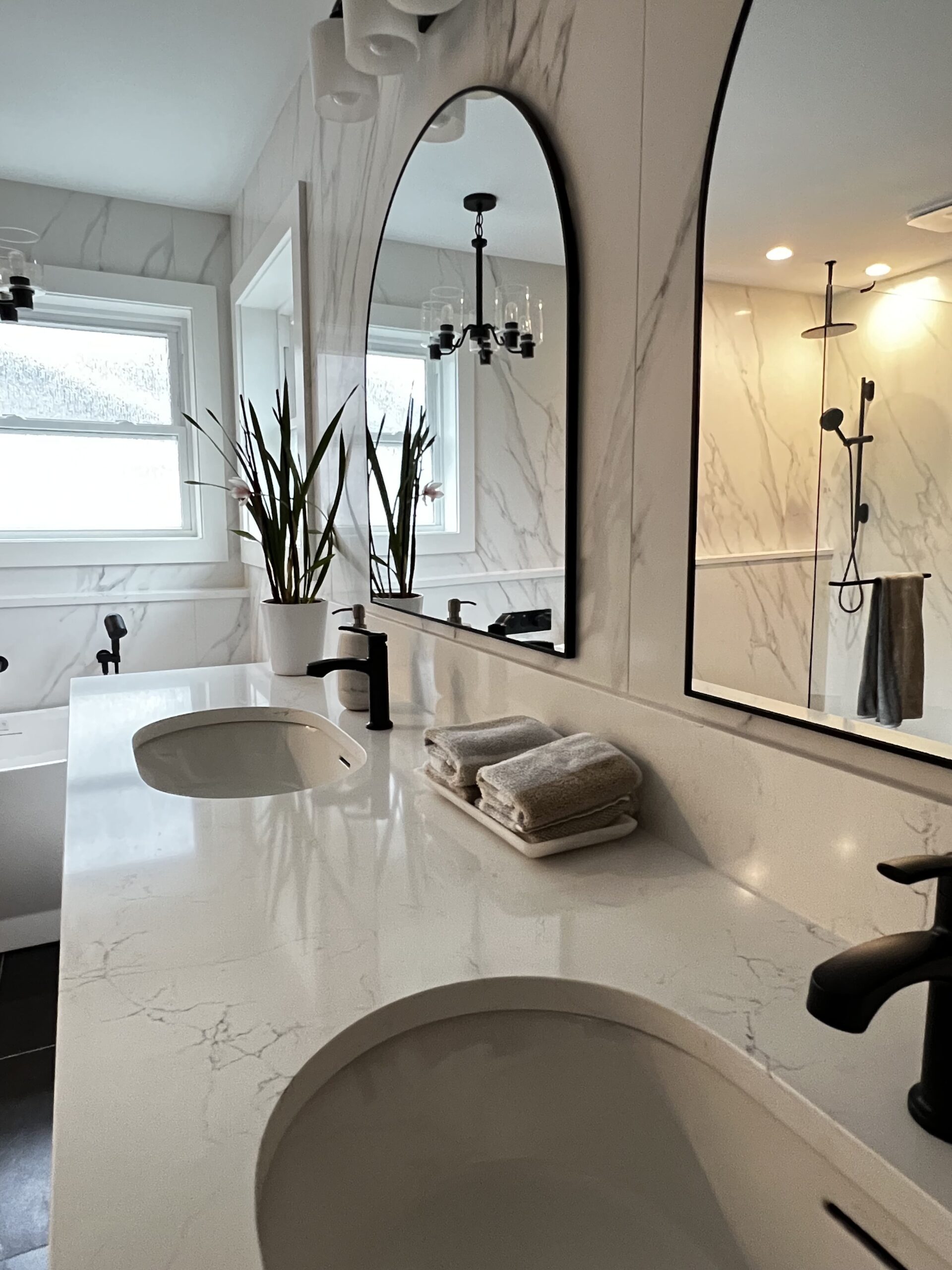 • Full Bathroom Remodel – A complete transformation of your bathroom, including flooring, fixtures, vanities, lighting, and layout redesign. Ideal for those who want a completely new look and improved comfort.