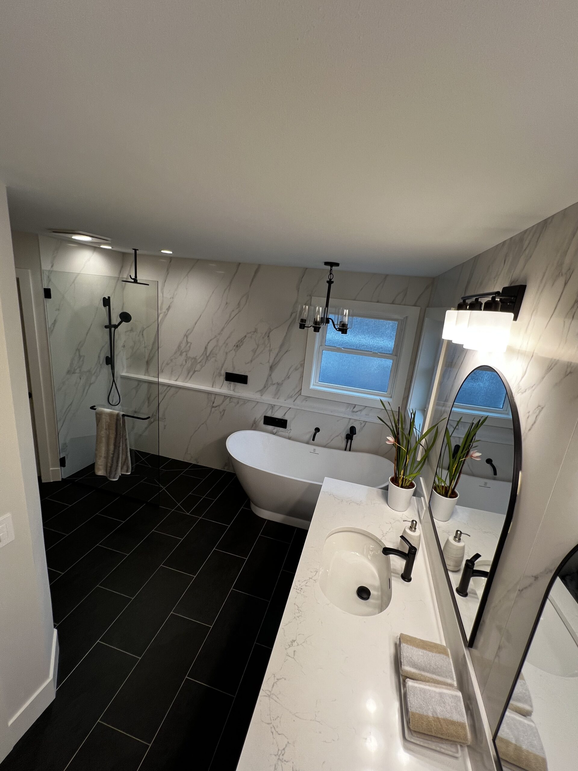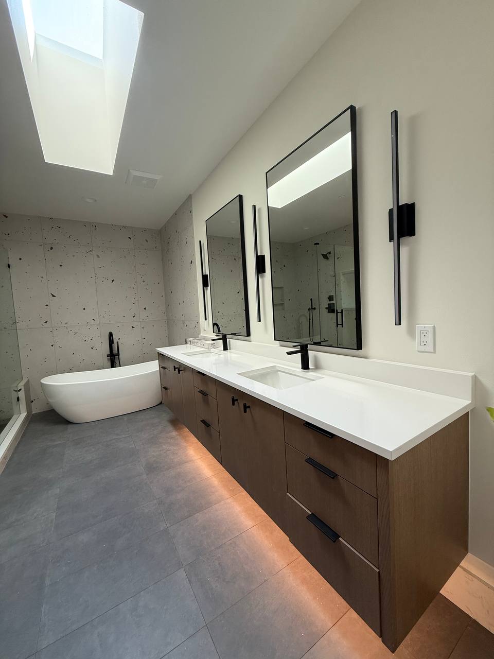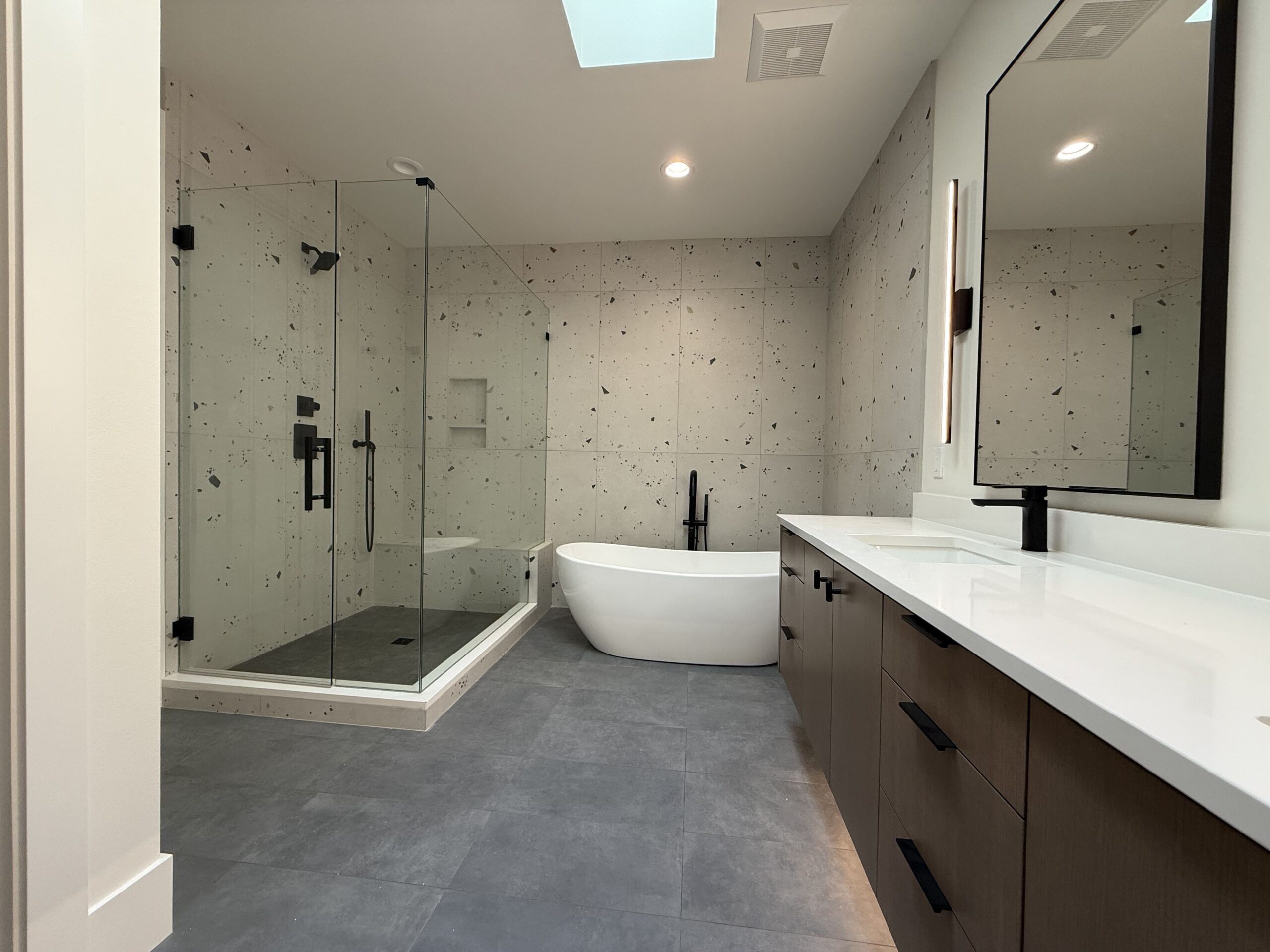 This bathroom remodeling project involved a complete renovation of an existing residential bathroom. The scope of work included structural updates, replacement of all major fixtures, and a full…